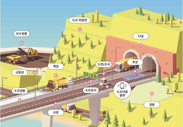 이에 따라, 현재 육안조사, 민원 등에 의존하여 도로시설물 파손이후 복구하는 도로유지관리 방식에서 벗어나 선제적이고 스마트한 예방중심형 도로유지관리 방식으로 전환한다고 밝혔다.