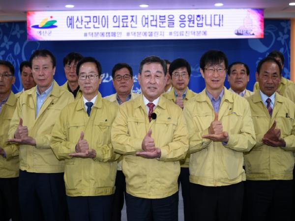 황선봉 예산군수는 "코로나19 위기 극복을 위해 헌신하는 의료진들의 노고에 감사드린다"며 "예산군도 코로나19 예방에 최선을 다하겠다"고 말했다.