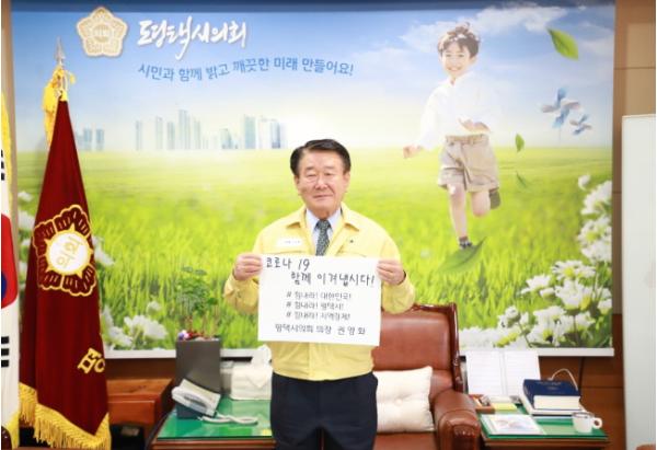 권영화 평택시의회 의장은 28일 코로나19로 어려움을 겪고 있는 국민과 평택시민에게 희망과 응원의 메시지를 전달하는 ‘희망 캠페인 릴레이’에 동참했다.