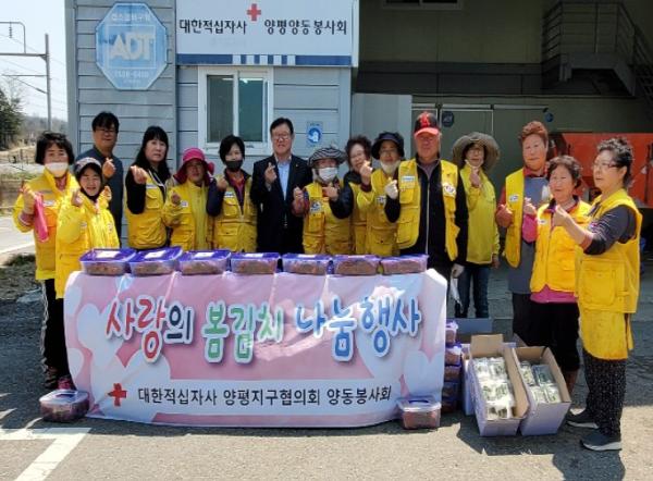 양평군 양동면 적십자회원 25여명은 2일간(27일~28일) 복지회관 앞에 모여 열무 200단으로 김치를 담가 떡과 함께 독거노인 등 취약계층 150가구에 전달해 따뜻한 이웃사랑을 실천했다.