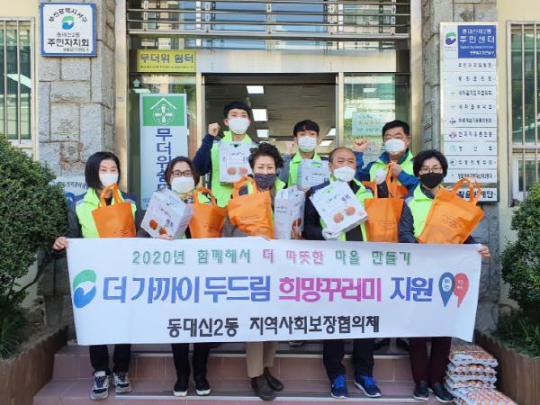 부산 서구 동대신2동 지역사회보장협의체(위원장 최환하)는 지난 28일 코로나19 장기화에 따른 사회적 고립가구 안부확인을 위해 “고독사 예방 더 가까이 두드림사업”일환으로 기초식품과 생필품이 담긴 희망꾸러미를 40세대에 전달하였다.