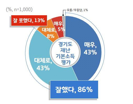 경기도민 대다수(86%)가 ‘경기도 재난기본소득’지급에 대해 긍정적으로 평가한다는 조사결과가 나왔다.