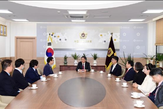 서울시의회 더불어민주당 김용석 대표의원(도봉1)은 28일(화) 오후 2시 서울시의회 본관에서 장인호 대한임상병리사협회장과 회원들을 초청하여 간담회를 가졌다.
