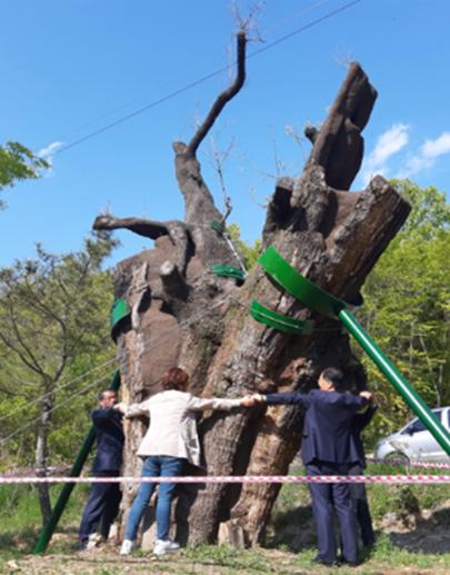 생육개선 사업은 지난달 17일부터 4월 10일까지 실시하였고 공동충전, 인공수피 처리 등의 외과수술과 영양공급 및 뿌리발근제 처리 등 정성어린 돌봄을 통해 고목나무에서 기대하던 새순들이 나타났다.