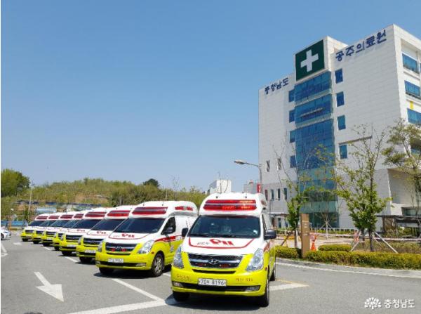 소방본부는 29일 구급차 10대를 동원, 공주의료원에 입원 중인 확진자 14명을 천안의료원으로 이송한다고 밝혔다.
