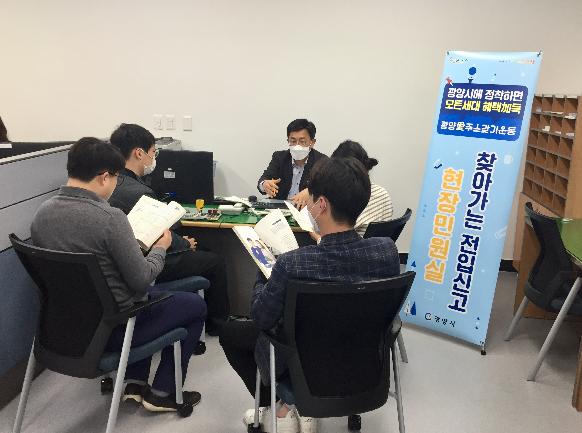 찾아가는 전입신고 서비스는 광양에 실제 거주하면서 여러 사정으로 주민등록을 두고 있지 않은 유관기관, 학교, 기업체 직원을 대상으로 고객중심 맞춤형 현장민원실을 운영하는 시책이다.
