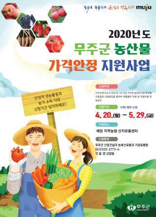 2020년 무주군 농산물가격안정 지원 사업’의 수매 1형에 대한 신청 ·접수를 5월 29일까지 받는다고 밝혔다.