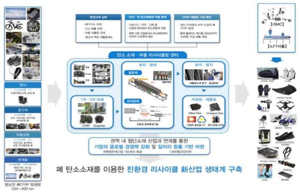 “탄소소재·부품 리사이클링 기반구축사업”은 2021년부터 3년간 198억원(국비 100, 지방비 98)을 투입해 경주시 구어2산업단지에 탄소 소재·부품 리사이클링 센터를 건축하고, 리사이클링 장비·설비 구 축, 품질고도화 기술지원, 전문 기술교육 및 인력양성 사업을 추진한다.