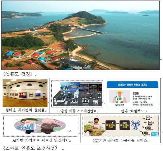 이 사업은 금산면 연홍도에 국비 6억원을 포함하여 총사업비 12억원을 투입해 ‘섬마을 뮤비컬쳐 플랫폼’, ‘고흥형 에듀스포테인먼트‘, ’행복한 연홍 로컬푸드‘, ’AI기반 가가호호 어르신케어‘, ’ICT기반 스마트 마을방송서비스‘ 등 총 5개 사업에 대해 금년 12월 준공목표로 사업을 진행하게 된다.