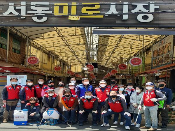 부산 금정구(구청장 정미영) 한국자유총연맹 금정구지회(회장 오용준)와 서3동 분회(회장 이학봉)는 코로나19 지역 확산 방지와 안심 서동미로시장 조성을 위해 지난달 26일 서동미로시장 내 방역 소독작업을 실시했다.