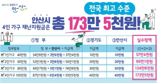안산시 재난지원금 전국 최고 수준…4인 가족 173만5천원 지급