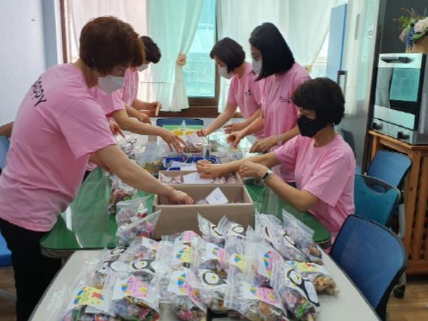 가족생활 행복건강 꾸러미를 만드는데 김천시청 가족행복과 직원뿐만 아니라 지역사회의 봉사단체인 자두꽃봉사회(회장 박경자)에서도 함께 참여하여, 아이들의 밝은 웃음을 기대하며 꾸러미를 하나하나 정성스럽게 만드는데 힘을 보탰다.