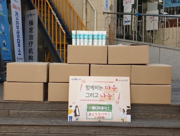 ㈜메디미플러스(방오남 대표)가 코로나19로 어려움을 겪는 지역사회 취약계층을 위해 포도당 캔디 7,200박스를 기부한 것이다. 뿐만 아니라, 같은 날 신사동 주민센터에 손세정제 1,200개도 함께 기부했다.