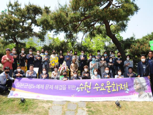 이번 수원수요문화제는 수원평화나비가 주최하고 수원시의회 더불어민주당이 주관한 것으로 일본군 성노예제 문제해결을 위한 자유발언, 평화공연, 성명서 낭독, 헌화 등 문화제 형식으로 진행됐다.