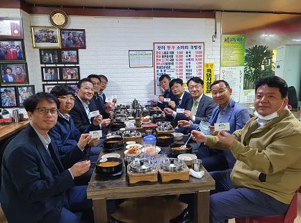 김재수 사장은 6일 임직원들과 함께 서정리 전통시장의 식당과 커피숍을 방문해 인증샷을 남겼다.