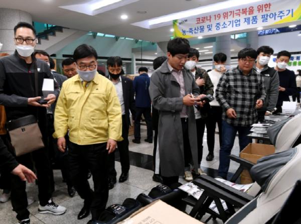 광주시가 코로나19 장기화로 경영 위기에 직면해 있는 관내 중소 기업인의 시름을 덜기 위하여 ‘관내 중소기업 제품 팔아주기’ 행사를 열어 큰 호응을 얻고 있다.