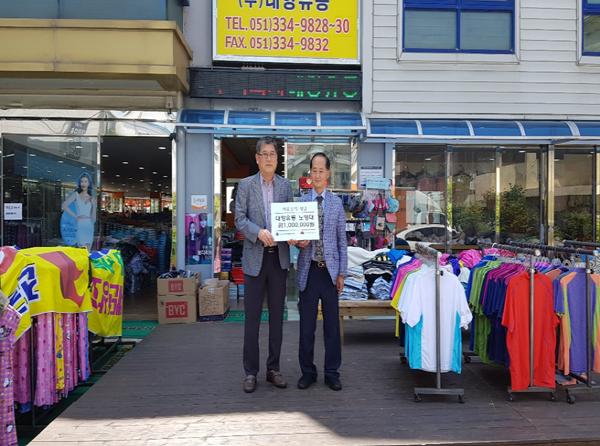 부산 북구 구포1동행정복지센터(동장 최호정)는 관내 ㈜대향유통(대표 노영대)이 지난 4월 29일 ‘코로나19’장기화로 어려움을 겪는 지역 주민을 돕기 위해 100만원의 성금을 기탁했다고 밝혔다.