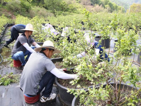 이날 봉사에 참여한 직원들은 꽃눈 솎기, 전지목 줍기, 고추심기, 제초작업 등의 활동을 펼치며 코로나19로 인해 침체한 지역 농업 살리기에 힘을 보태는 모습을 보였다.