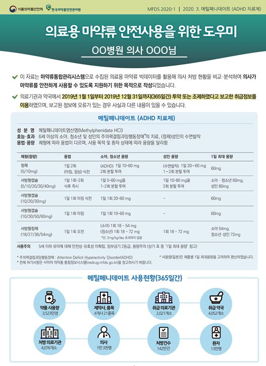 이번 서한은 향정신성의약품 중 ADHD 치료에 사용하는 메틸페니데이트를 주성분으로 하는 마약류의약품 사용을 분석하여 처방 의사별로 종합 분석한 자료로서,