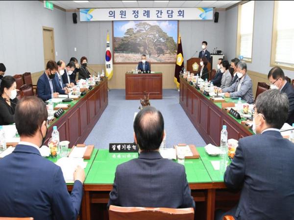 오후에는 군 기획예산실장을 비롯한 관련부서장이 참석한 가운데 의원 정례간담회를 개최하여 그동안 군정 주요사업에 대한 전반적인 보고를 청취했다.