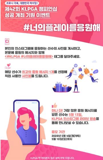 KLPGA는 지난 4일(월)부터 KLPGA 공식 인스타그램을 통해 ‘제42회 KLPGA 챔피언십’의 성공적인 개최 및 출전 선수를 직접 응원할 수 있는 ‘#너의플레이를응원해’ 이벤트를 시작했다.