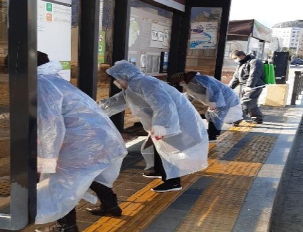 의정부시 송산3동 행정복지센터 통장협의회(회장 원유현)는 코로나 19의 지역 내 확산을 막고 주민불안감을 해소하기 위해 4월 2일 주민들의 접촉이 잦은 관내 버스정류장을 대상으로 방역활동을 실시했다.