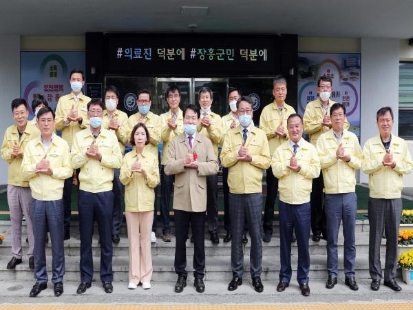정종순 장흥군수가 8일 코로나19 극복을 위해 헌신한 의료진에게 존경과 감사를 전하는 ‘덕분에 챌린지’ 캠페인에 동참했다.