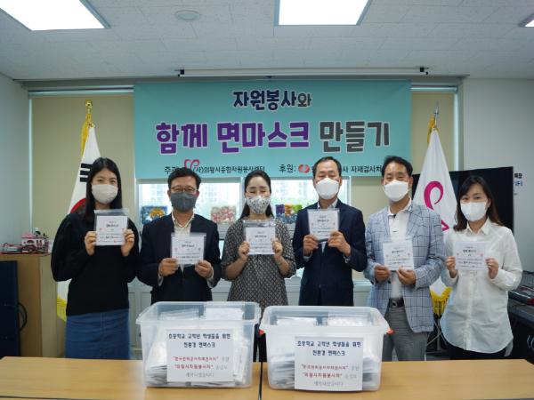의왕시종합자원봉사센터(센터장 홍석호)는 한국전력공사 자재검사처의 후원을 통해 자원봉사센터 소속 왕바시 강사단과 손바느질팀 자원봉사자의 도움으로 아동을 위한‘함께 면마스크’만들기를 진행했다.