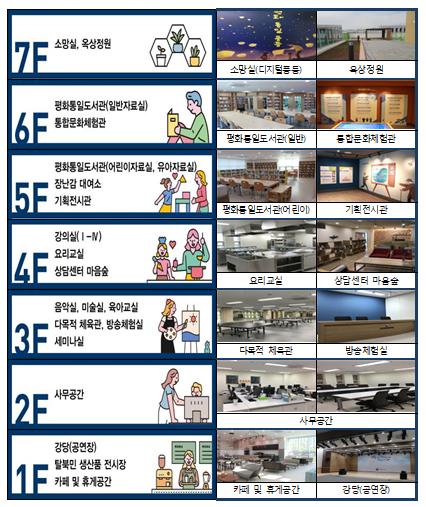 아울러 센터는 남녀노소 누구나 이용이 가능한 기획전시관, 통합문화체험관, 평화통일도서관(어린이도서관 포함) 등의 체험 공간이 ‘평화와 통합을 체험하는 산실’이 될 수 있도록 앞장서겠다.
