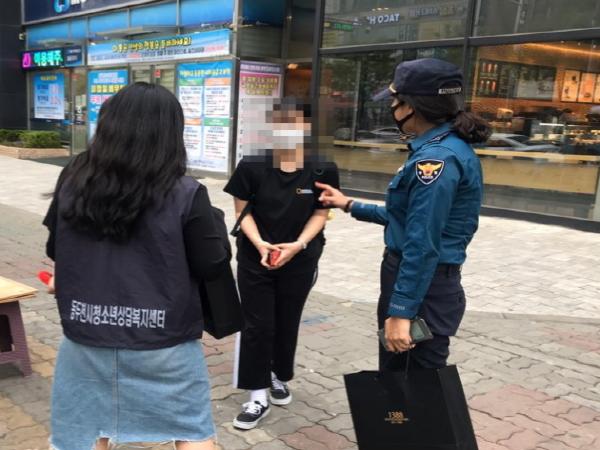 동두천시청소년상담복지센터(센터장 박미정)에서는 지난 8일 동두천경찰서와 함께 청소년 다중이용시설이 밀집되어 있는 지행역 인근에서 등교수업을 앞둔 청소년 대상으로 ‘찾아가는 거리상담(아웃리치)’과 코로나19 ‘생활 속 거리두기’ 홍보캠페인을 실시했다.