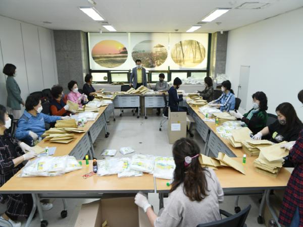 이날 (사)경기도여성단체협의회 구리시지회(회장 유성연) 회원 12명은 양육수당 지급아동 가정의 우편배송을 위한 면마스크와 필터 포장 봉사에 동참했다. 여성단체 회원들은 체온측정 후 마스크와 라텍스 장갑을 착용하는 등 코로나19 예방지침을 지켜 작업에 임했다.