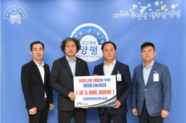 지난 11일 양평지역건축사회(회장 우현배)에서 코로나19 확산방지를 위한 성금 300만원을 기탁하였다는 훈훈한 소식을 전했다.
