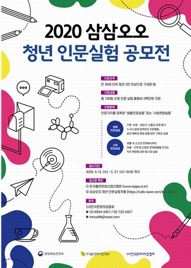 문화체육관광부(장관 박양우)는 한국출판문화산업진흥원(원장 김수영)과 함께 5월 13일부터 27일까지 ‘삼삼오오 청년 인문실험’에 참여할 청년모임 100팀을 모집한다.