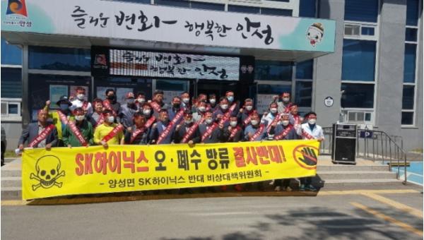 특히, 양성면은 농업의 근간이 되는 한천에 산업용 폐수를 방류 시 농사짓는 농민에게 막대한 피해와, 유해물질이 포함된 고온의 방류수로 인한 연무로 주민건강악화, 집중호우 시 37만 톤의 산업폐수 방류 시 유수량 증가로 인한 재난재해 등의 문제 등으로 SK하이닉스의 산업폐수 한천방류에 대하여 반대 입장을 밝혔다.