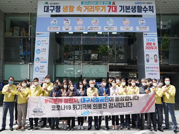 대구시설공단(이사장 김호경)은 코로나19 극복을 위해 노력하는 의료진과 대구시민들에게 감사와 응원의 마음을 전하는 ‘덕분에 챌린지’ 캠페인에 동참했다.