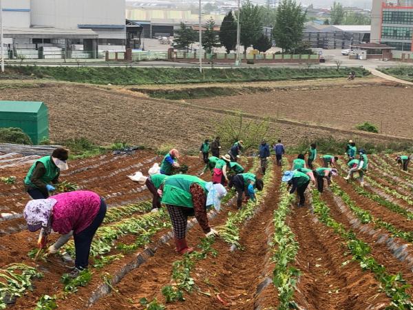 진천 이월면 새마을남녀지도자협의회는 14일 이월면 청호나이스 옆 텃밭에서 사랑의 고구마 심기 행사를 가졌다.