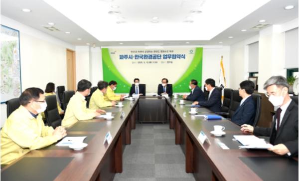 파주시는 파주환경순환센터 현대화사업 등 환경기초시설 신·증설 사업을 성공적으로 추진하기위해 지난 12일 한국환경공단과 업무협약(MOU)을 체결했다.