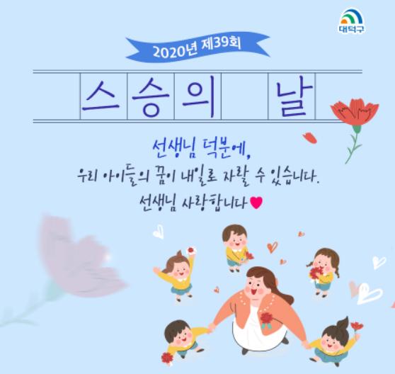 대전시 박정현 대덕구청장이 제39회 스승의 날을 맞아 축하메시지를 발표했다.