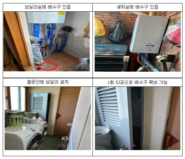 이번에 적발된 위반사례를 살펴보면, 3건 중 2건은 보일러실과 세탁실 등 보일러를 설치한 곳에 친환경보일러 응축수를 배출할 배수구가 있는데도 불구하고 미인증 일반보일러를 시공한 경우이다. 나머지 한 건은 벽을 1회 뚫으면 배수구를 확보할 수 있는데도 미인증 일반보일러를 시공해 적발되었다.
