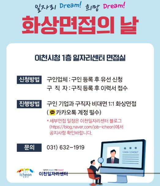 화상면접은 물론 구인이 필요한 기업과 일자리를 찾는 구직자라면 누구나 이천일자리센터로 연락하면 된다.