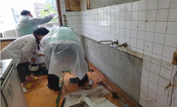 수영구(구청장 강성태)에서는 수영구 새마을지도자협의회(회장 정종무)와 연계하여 ‘뚝딱이 봉사단’이라는 이름으로 관내 취약계층에게 집수리를 지원한다. 2015년 3월 출범 이후 현재까지 총 84세대를 방문하여 117,086천원 상당의 주거환경 개선 작업을 완료하였으며, 올해는 5월 9일부터 6월말까지 18세대를 대상으로 소규모 집수리 작업을 진행한다.