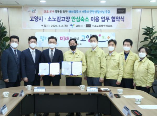 고양시(시장 이재준)는 2일 관내 호텔 소노캄고양(본부장 이병천)과 안심숙소 이용 업무 협약을 체결해 해외입국자 가족들을 대상으로 안심숙소 서비스를 실시한다고 밝혔다.