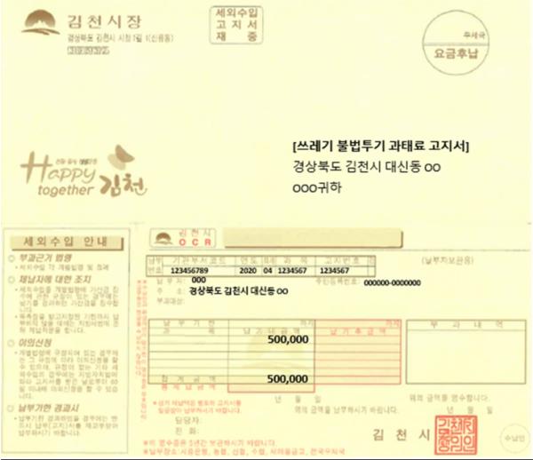 김천시(시장 김충섭)는 기존에 시행되고 있는 신고포상금 제도를 활성화하여 시민의 참여와 관심을 통한 신고문화를 정착시켜 불법투기를 근절하고 깨끗한 생활환경을 조성하겠다고 밝혔다.