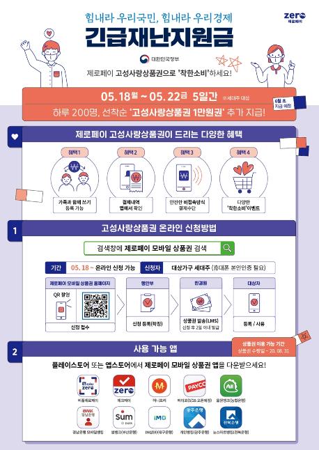 고성군(군수 백두현)은 5월 18일부터 5부제 신청제한 없이 정부 긴급재난지원금을 모바일형 고성사랑상품권으로 언제든지 신청할 수 있게 했다.