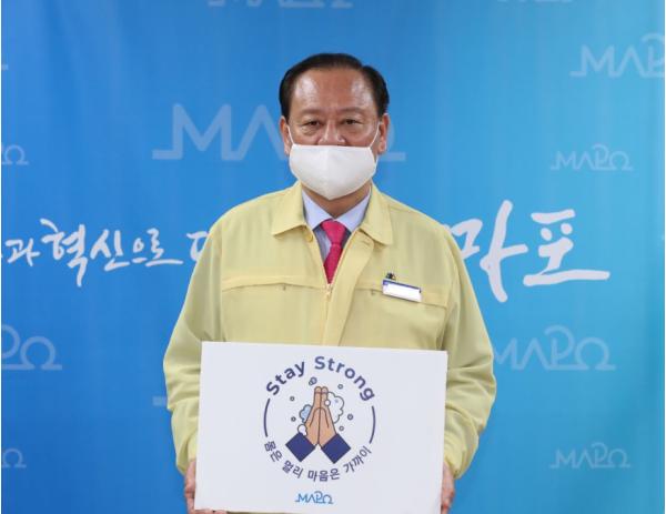 유동균 마포구청장이 15일(금) 김미경 은평구청장의 지명을 받아 코로나19 극복 ‘스테이 스트롱(Stay Strong)’ 캠페인에 참여했다.