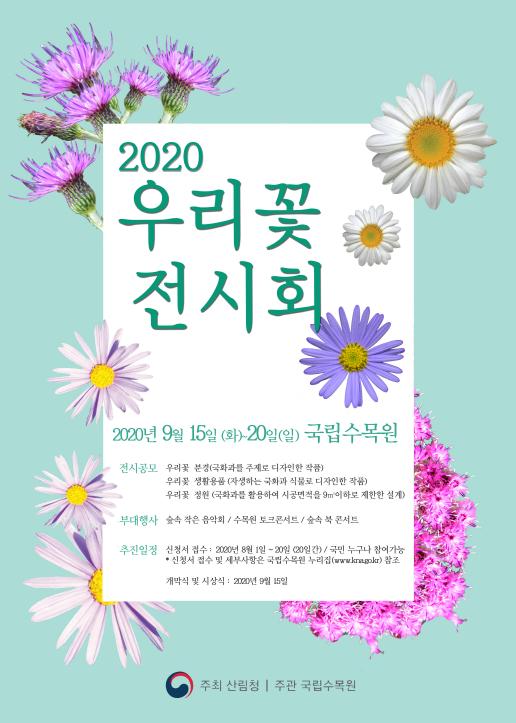 산림청 국립수목원(원장 이유미)은 우리 자생식물의 아름다움을 널리 알리기 위한 ‘2020 우리 꽃 전시회’의 국민참여 공모전(분경분야, 생활용품분야, 정원분야)을 개최한다.