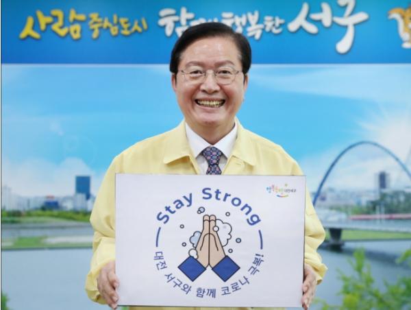 장종태 대전 서구청장이 코로나19로 어려움을 겪고 있는 모든 이들에게 지치지 말고 함께 이겨내자는 메시지를 전하기 위한 ’스테이 스트롱(Stay Strong) 캠페인’에 18일 동참했다.