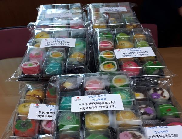 부산 금정구(구청장 정미영) 금사회동동에 위치한 ㈜명품정항우케익(회장 정항우)은 지난달 31일 코로나19 확산으로 결식 우려가 있는 관내 취약계층을 위해 화과자 595개를 금사회동동 행정복지센터에 기탁했다.