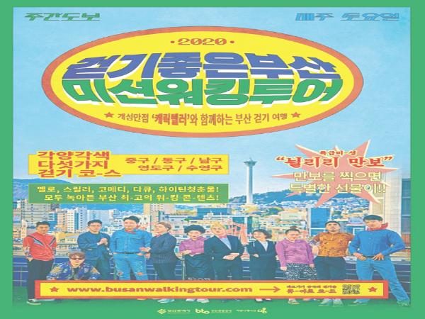 부산시는 부산관광공사와 함께 사람중심 보행정책에 맞춰 부산 도심 속 도보 테마 관광 프로그램인 ‘2020년 걷기좋은부산, 미션 워킹투어’를 운영한다고 밝혔다.