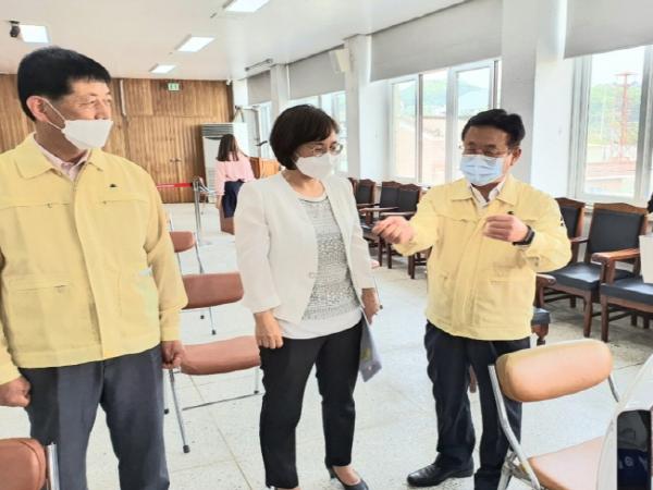 이차영 충북 괴산군수가 긴급재난지원금 오프라인 신청 첫날인 18일 직접 현장 점검에 나섰다.